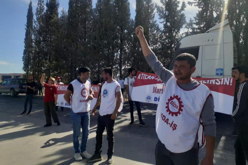 Gıda-İş Ege Bölge Temsilcisi Ufuktan Öden “Bizim burada en demokratik hakkımızı engelliyorlar ancak biz buraya direniş çadırını kurmakta kararlıyız. Direnişimize devam edeceğiz.” dedi.