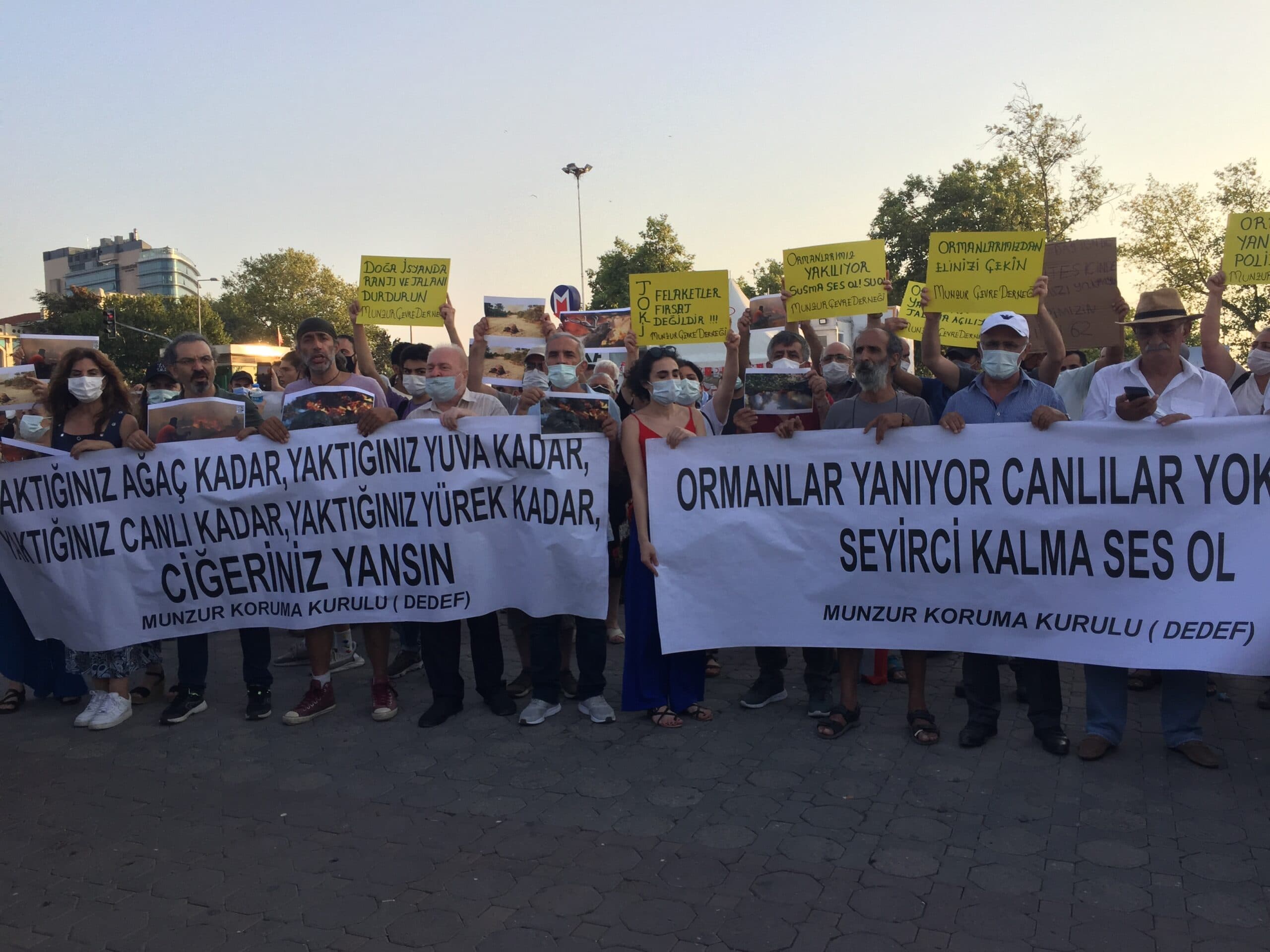 Dersim Dernekleri Federasyonu (DEDEF) Munzur Koruma Kurulu, Dersim’deki orman yangınlarına ilişkin Kadıköy’de bulunan Rıhtım Meydanı’nda bir araya gelerek basın açıklaması gerçekleştirdi. Açıklamada, “Ormanlar yanıyor, canlılar yok oluyor. Seyirci kalma ses ol” ve “Yaktığınız ağaç kadar, yaktığınız yuva kadar, yaktığınız canlı kadar, yaktığınız yürek kadar, ciğeriniz yansın” pankartları açılırken sık sık, “Dersim’den Marmaris’e yangınlara müdahale” ve “Ormanları söndürün yüreğimiz yanıyor” sloganları atıldı.