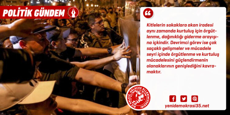Demokrasi ve özgürlük için barikatları yıkarak harekete geçen gençlik, toplumsal harekete büyük bir cesaret aşıladı. Gençliğin yarattığı hareketin cesareti, CHP’yi dahi günlerce sokakta kalmaya, kalabalıkları sokakta oyalamaya mecbur bıraktı. CHP, bir yandan kitlelerin öfkesiyle uyumsuz görünmemek, dahası bu öfkeye hak verir görünmek için hareketin “yoksulluğa, anti demokratik uygulamalara, özgürlüklerin kısıtlanmasına” karşı olduğunu söyleyip gerçekleştirdiği mitinglere gençlik eylemlerinde belirginleşen etiketleri yapıştırdı. Böylece CHP, kitlelerin sistem karşısında geliştirdikleri demokratik ve süreğenleşebilir politik tutumu kendi potasında eriteceğini ve sistemin sınırlarını zorlayacak düzeyde ileri gitmesini engelleyeceğini umdu. Egemen sınıf partilerinin kendi aralarındaki çelişki ne kadar yoğunlaşırsa yoğunlaşsın devlet düzeni onların sınırlarıdır ve kitlelerin karşısında onlar bu sınırları korumakla sorumlu olmaktan vazgeçmezler; geçemezler…