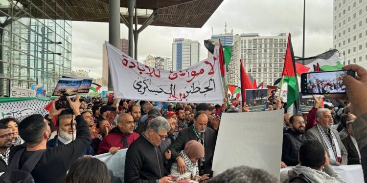 Kazablanka’da liman önünde toplanan kitle, limanların ve Fas karasularının Siyonist İsrail ile bağlantılı gemilere kapatılması talebiyle eylem gerçekleştirdi. Liman işçilerinin yoğun katılım gösterdiği protestolarda polisin abluka girişimlerine karşı kitle tren istasyonu girişini işgal ederek “Halk Geminin Defolmasını İstiyor” sloganıyla Maersk Nexeo’yu protesto etti.