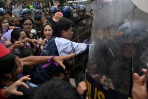 Kadın ve LGBTİ+lar polis barikatına yüklenerek ABD Büyükelçiliğine yürümek istedi. Kalaw Caddesi üzerinde eylemciler ve polis arasında çatışma çıktı.