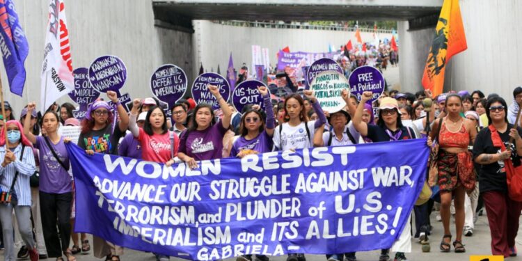 Çok sayıda kadın ve LGBTİ+ örgütünün çağrılarıyla binlerce kişi 8 Mart’ta Manila’da bulunan Kalaw Caddesi’nde yürüyüş düzenlendi. ABD Büyükelçiliğine doğru yapılan yürüyüş önü polis tarafından kesildi.