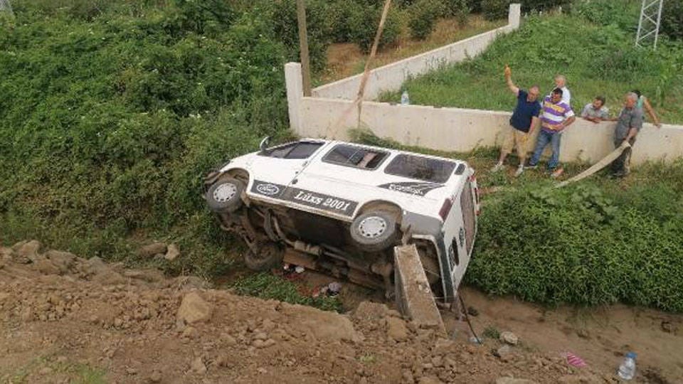 Fındık işçilerini taşıyan minibüs şarampole devrildi: 13 işçi yaralandı