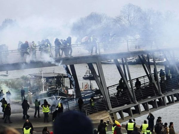 Fransa’da benzin fiyatlarının artmasına yönelik başlayan ve ilerleyen süreçte hükümet karşıtı gösterilere dönüşen ‘sarı yelekliler’ eylemlerinde ilginç bir görüntü ortaya çıktı. 8. haftaya giren ‘sarı yelekliler’in eylemlerinde polisin sert müdahalesine bir gösterici sert tepki gösterdi. Orsay Müzesi önündeki bir köprüde polisin kalkan ve gaz bombalarına karşı bir gösterici yumruklarıyla karşılık verdi.