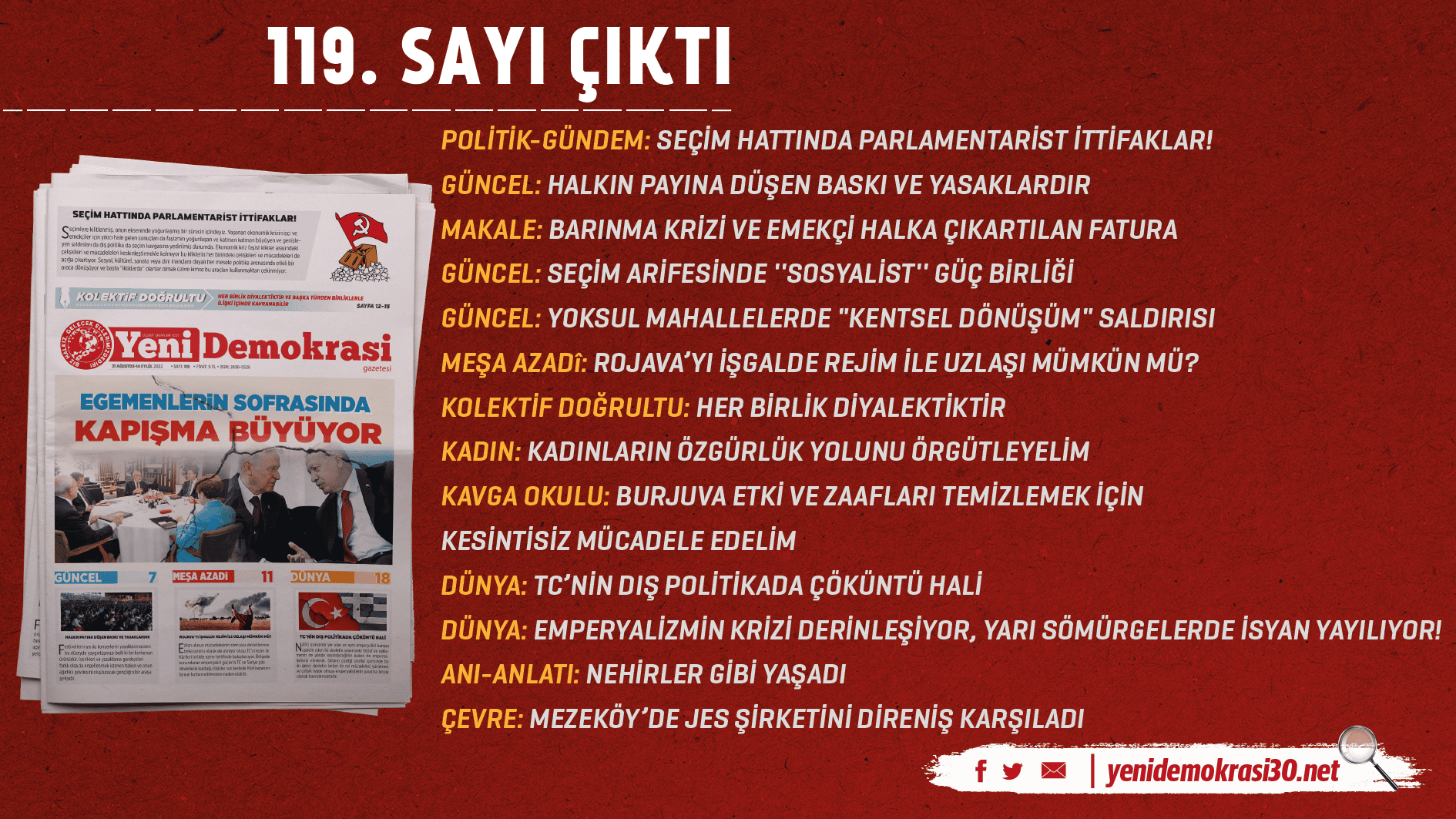 Anasayfa » Gazetemiz Yeni Demokrasi’nin 119. sayısı “Egemenlerin Sofrasında Kapışma Büyüyor” manşetiyle çıktı