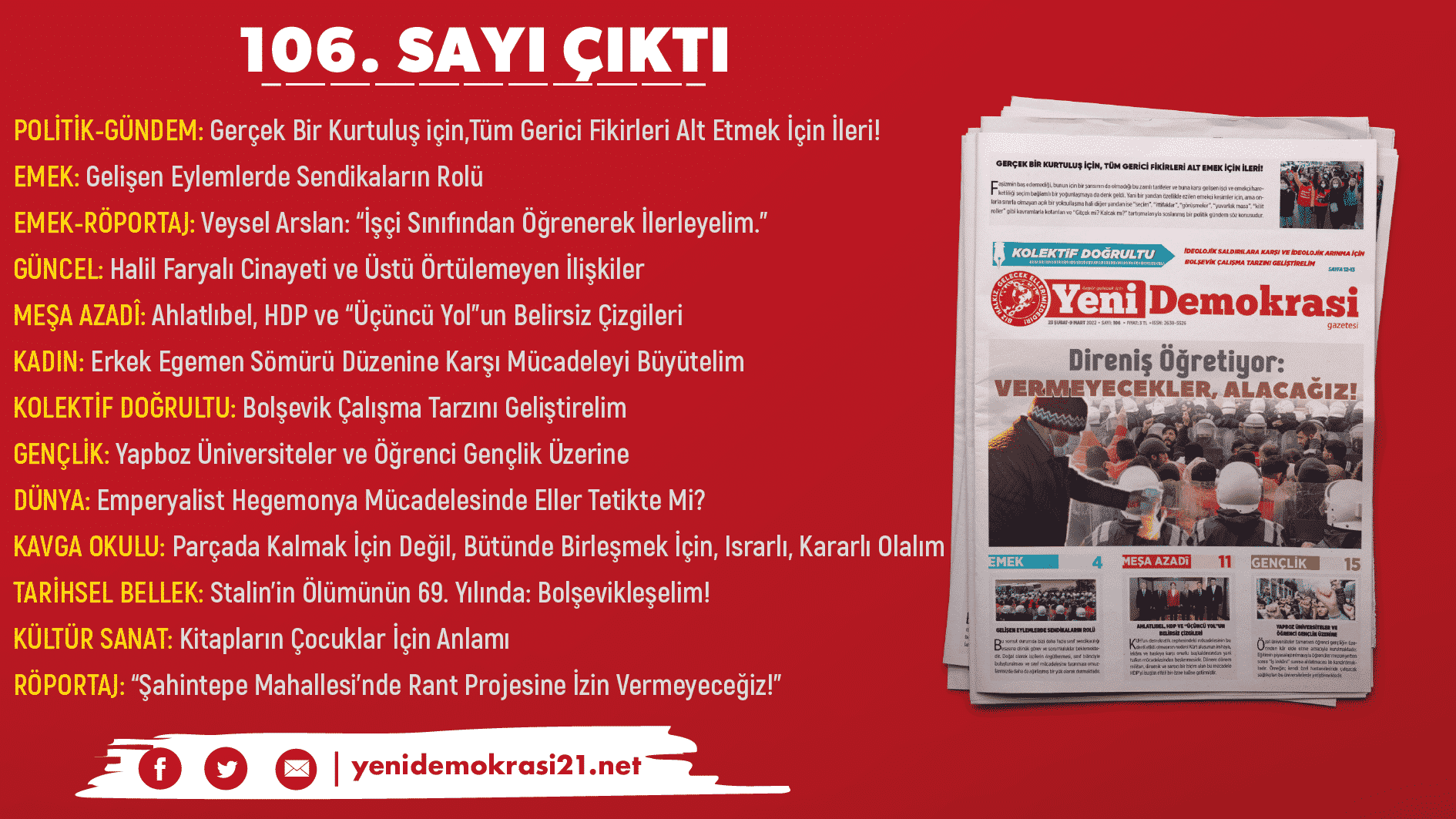 İLETİŞİM: yenidemokrasigazetesi@gmail.com – 0212 534 54 76