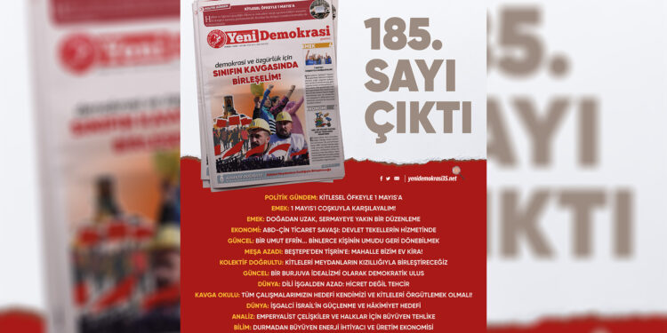 Gazetemiz Yeni Demokrasi’nin 185. sayısı “Demokrasi ve Özgürlük İçin Sınıfın Kavgasında Birleşelim” manşetiyle çıktı. Gazetemize Umut Yayımcılık büroları, Kadıköy ve Taksim Mephisto Kitabevi’nden ulaşabilirsiniz.