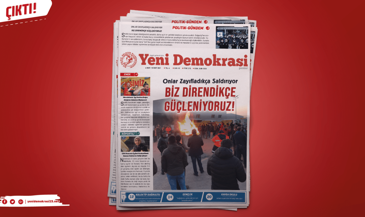 HABER MERKEZİ- Gazetemiz Yeni Demokrasi’nin 4 Mart 2021 tarihli 82. sayısı, “Onlar Zayıfladıkça Saldırıyor, Biz Direndikçe Güçleniyoruz” manşetiyle çıktı.