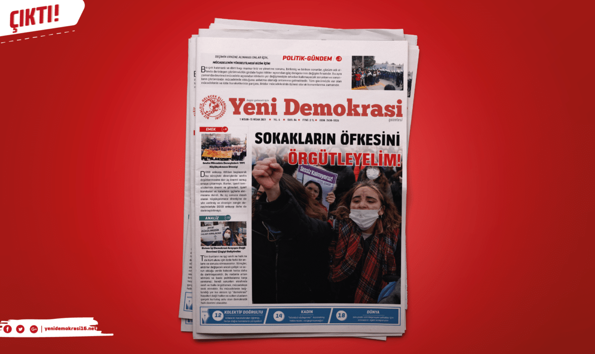 HABER MERKEZİ- Gazetemiz Yeni Demokrasi’nin 1 Nisan 2021 tarihli 84. sayısı, “Sokakların Öfkesini Örgütleyelim!” manşetiyle çıktı.