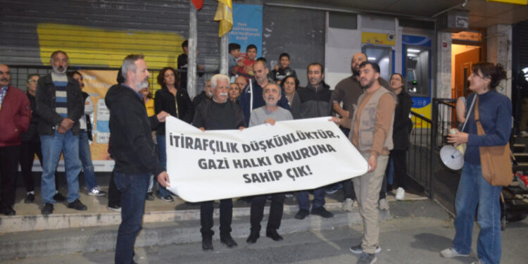 Eylemde sık sık, “Gazi Halkı Onuruna Sahip Çık”, “Susma, Sustukça Sıra Sana Gelecek” sloganları atıldı.