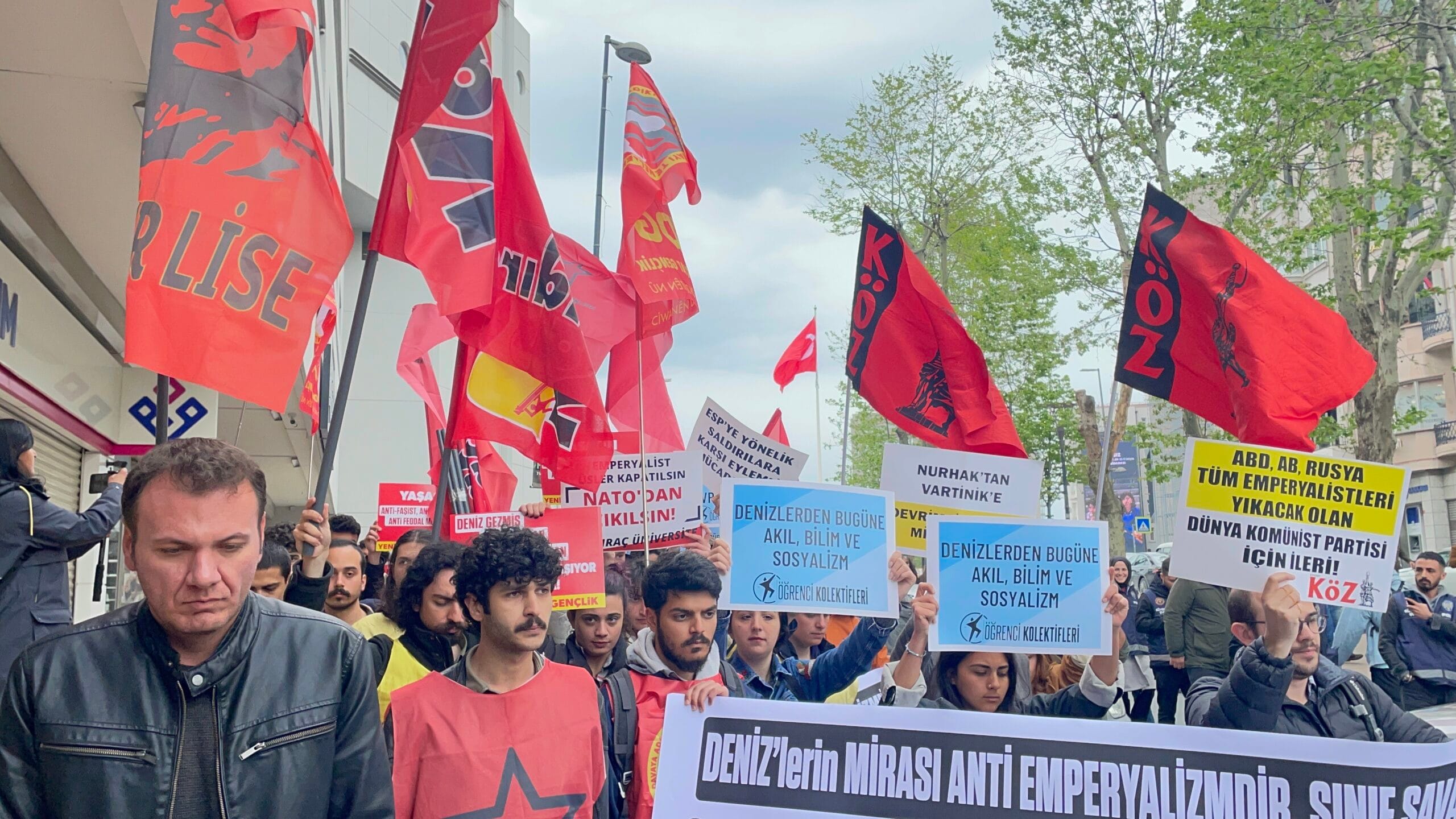 Yürüyüş boyunca “Emperyalistler, İş Birlikçiler, 6. Filoyu Unutmayın!”, “Deniz, Yusuf, Hüseyin Sürüyor Sürecek Mücadelemiz!” ve “Yaşasın Halkların Kardeşliği!” sloganları atıldı.
