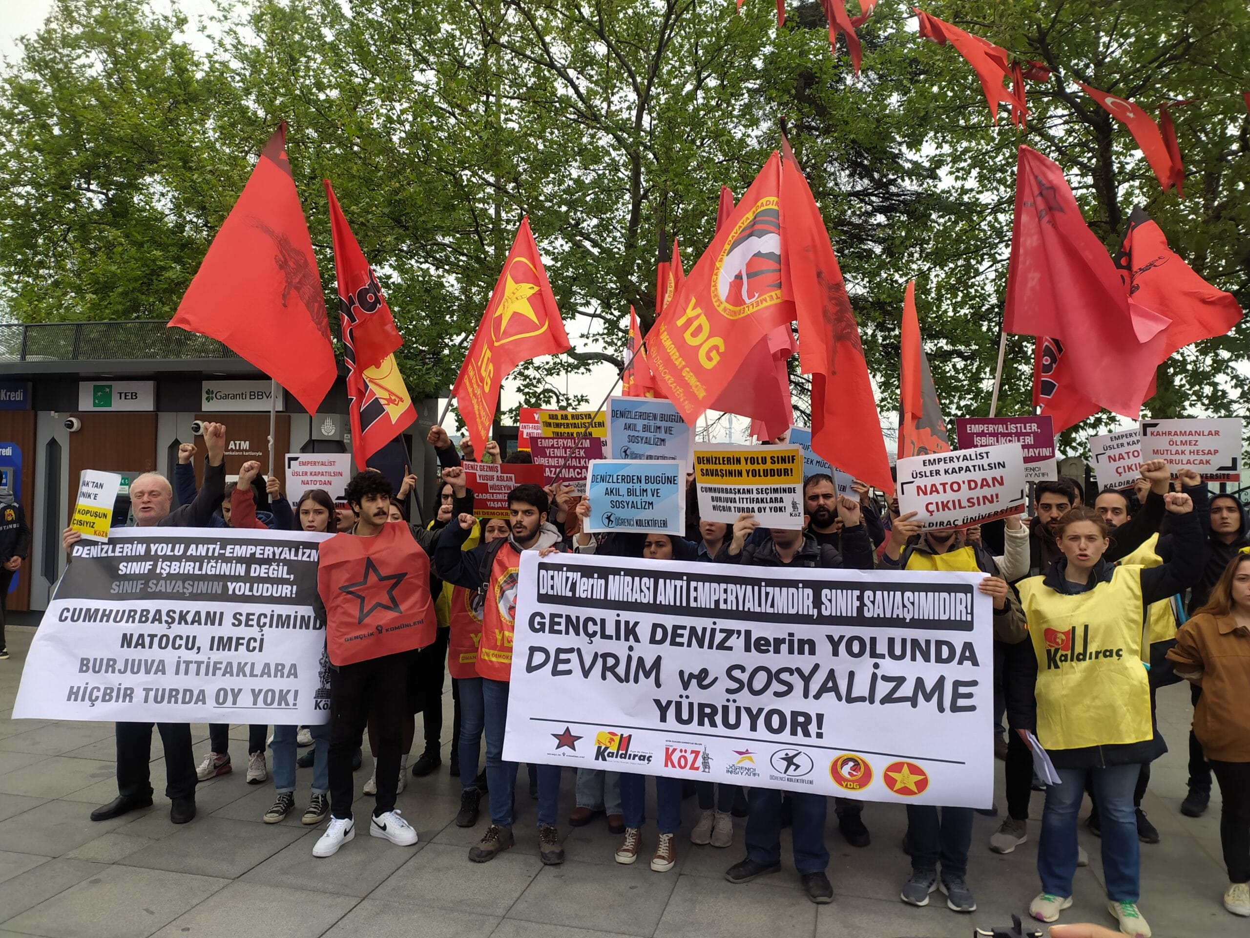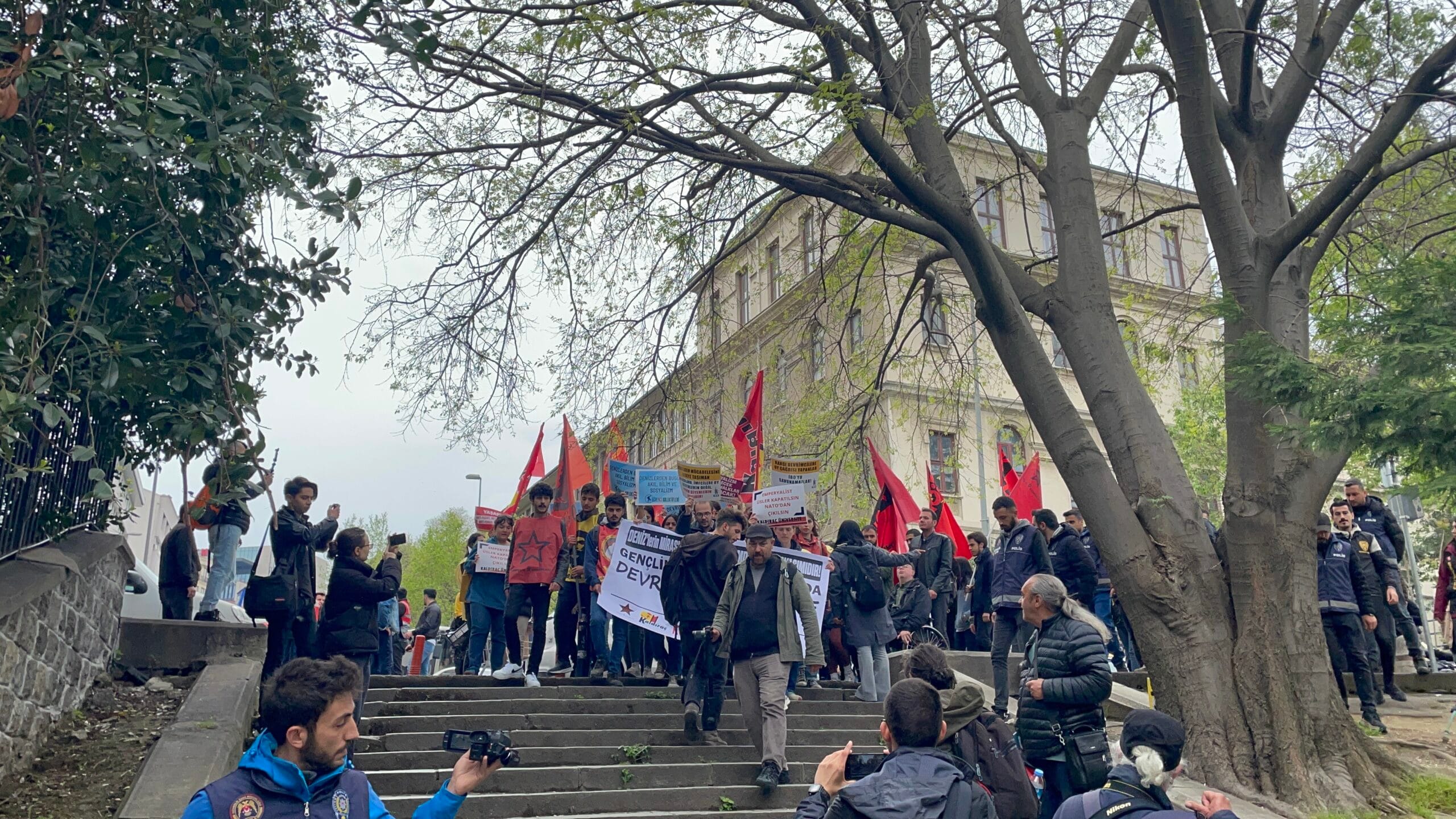 Denizlerin 6. Filo’yu Dolmabahçe’de denize döktüğü eylemi sembolize eden Dolmabahçe’ye yürüyüş için Deniz Gezmiş, Yusuf Arslan ve Hüseyin İnan’ın idam edilişlerinin 51. yılında gençlik örgütleri Atatürk Kültür Merkezi (AKM) önünde bir araya geldi.