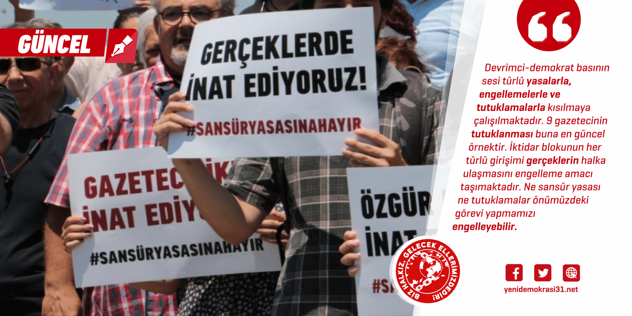 İktidar blokunun “Dezenformasyon Yasası” adını verdiği “Sansür Yasası” geçtiğimiz haftalarda Resmi Gazete’de yayımlanarak yürürlüğe girdi. Birçok kesimin karşı çıktığı bu yasa muhalif, devrimci, demokrat basının sesini kısmak için ortaya atıldı. Neden bu kesimleri etkileyeceğini gayet iyi biliyoruz çünkü burjuva-feodal medyanın halka gerçekleri anlatma gibi bir ideali yok. Halka gerçekleri anlatma görevi burada devrimci-demokrat basına düşmektedir. Devrimci-demokrat basının sesi türlü yasalarla, engellemelerle ve tutuklamalarla kısılmaya çalışılmaktadır. 9 gazetecinin tutuklanması buna en güncel örnektir. İktidar blokunun her türlü girişimi gerçeklerin halka ulaşmasını engelleme amacı taşımaktadır. Ne sansür yasası ne tutuklamalar önümüzdeki görevi yapmamızı engelleyebilir.