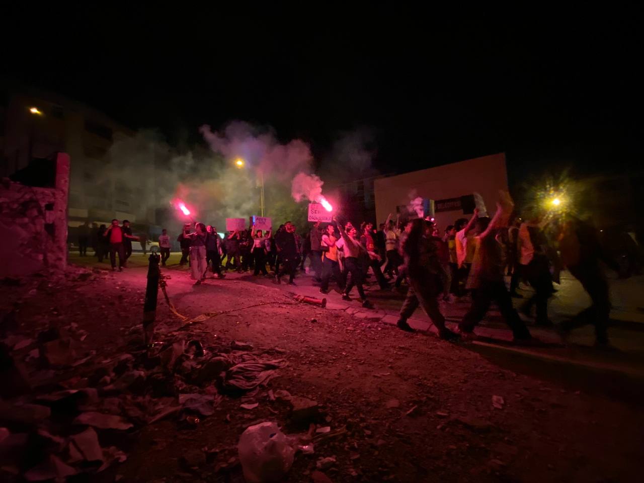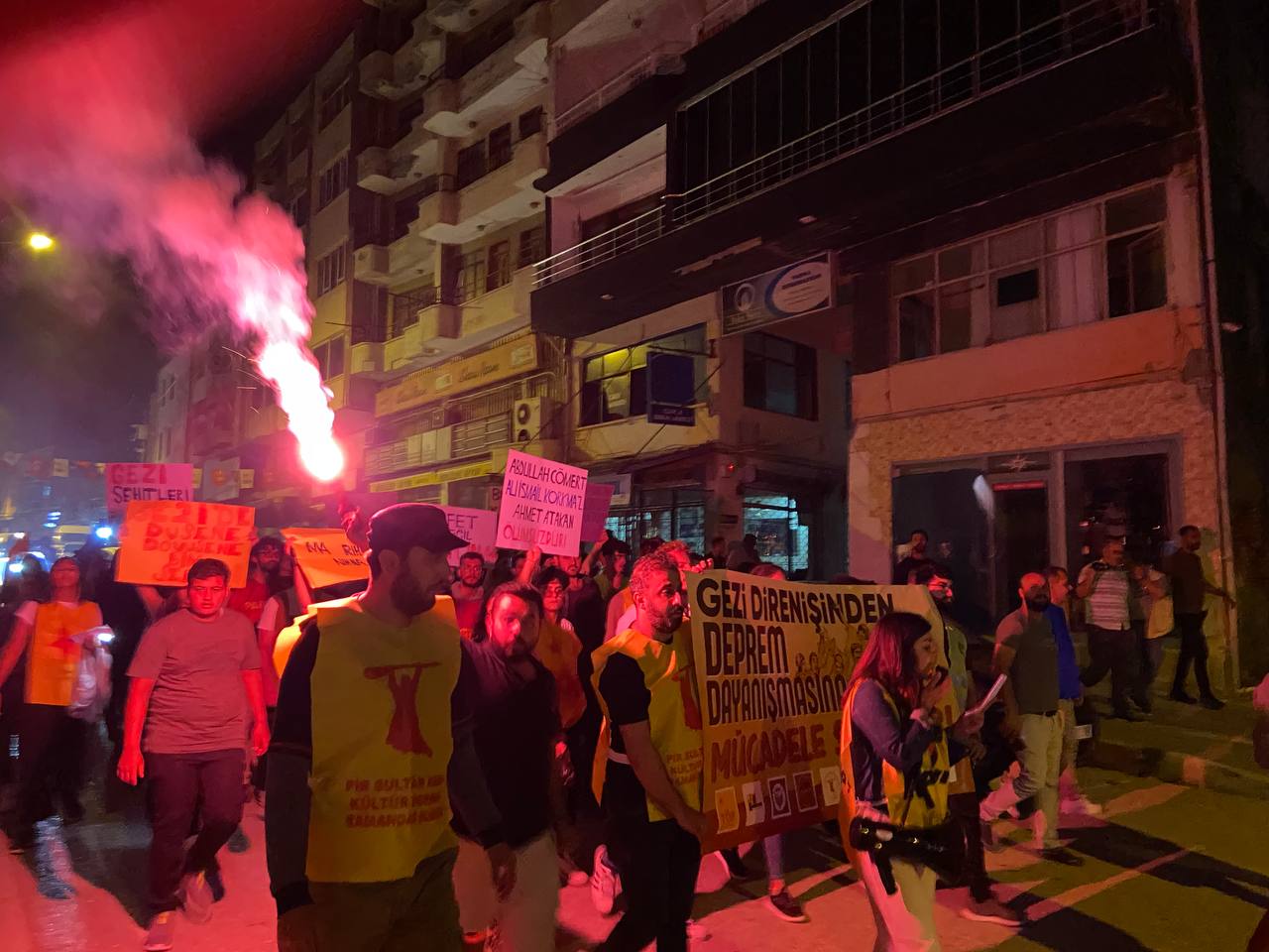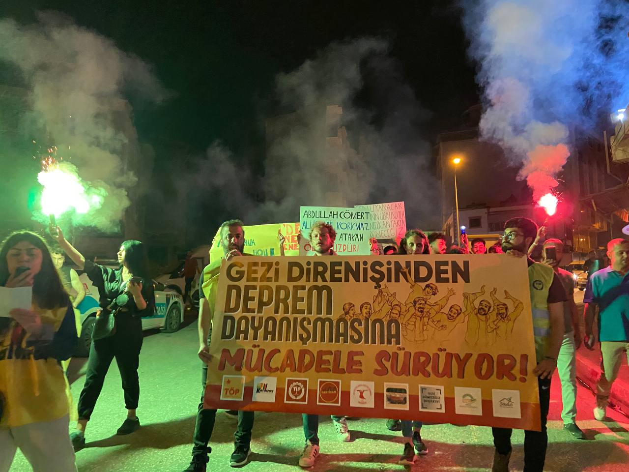 Aralarında Partizan okurları, dayanışma evleri, Pir Sultan Abdal Kültür Merkezi ve birçok kurumunda bulunduğu kortej, Abdullah Cömert alanında toplanarak meşale ve mumlarla Gezi’de ölümsüzleşenleri andı. Depremin 122. gününde gerçekleşen yürüyüşte dayanışma ve direnişe vurgu yapan kitle, yeniden inşanın sözünü yineledi. Yürüyüş boyunca Gezi İsyanında ölümsüzleşenlerin isimleri okundu.