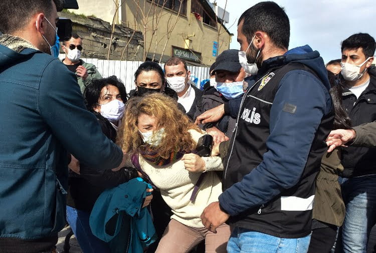 HABER MERKEZİ- Boğaziçi eylemlerinde tutuklananlar için yazılama yaparken gözaltına alınan beş öğrenciye destek için Çağlayan Adliyesi önüne gelen Halkevleri üyelerine polis saldırdı. En az dokuz kişi gözaltına alındı.