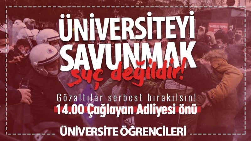HABER MERKEZİ- Boğaziçi Üniversitesi’ne atanan kayyum rektörü protesto etmeleri nedeniyle evlerine baskın düzenlenerek gözaltına alınan üniversite öğrencileri bugün adliyeye çıkarılacak. “Üniversiteyi savunmak suç değildir” diyen öğrenciler saat 14.00’da Çağlayan Adliyesi önüne çağrı yaptı.