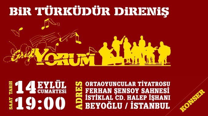 HABER MERKEZİ- Grup Yorum’un 14 Eylül’de Taksim Ortaoyuncular Sahnesi’nde düzenleyeceği konser kaymakamlık tarafından yasaklandı.