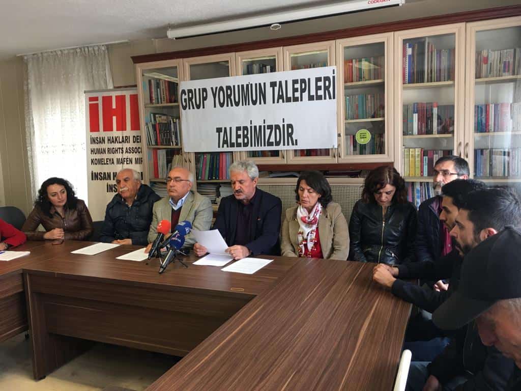 Bizler gerek Grup Yorum’un gerek Mustafa Koçak ve müvekkillerinin talepleri için açlık grevi yapan ÇHD’li avukatların taleplerinin biran önce kabul edilmesini istiyoruz. Zorla müdahalenin sakatlık ve ölüm dışında bir sonucunun olmadığını belirtiyor Bölek ve Gökçek’in başına geleceklerden zorla müdahaleyi yapan devletin yetkili kurumlarının sorumlu olacağını ifade ederek bunun bir cinayet olduğunu bir kez daha vurgularken Grup Yorum üyeleri, Mustafa Koçak ve avukatlarının biran önce serbest bırakılmasını istiyoruz” ifadelerinin dile getirilmesiyle sonlandırıldı.