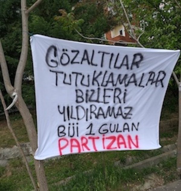 HABER MERKEZİ – 1 Mayıs’ta Taksim’e çıkma iradesi gösteren devrimci kurumlara polis saldırı sonrası birçok gözaltılar meydana geldi. Bu duruma dikkat çekmek isteyen Partizan, Gülsuyu’nda birçok yere pankart astı.