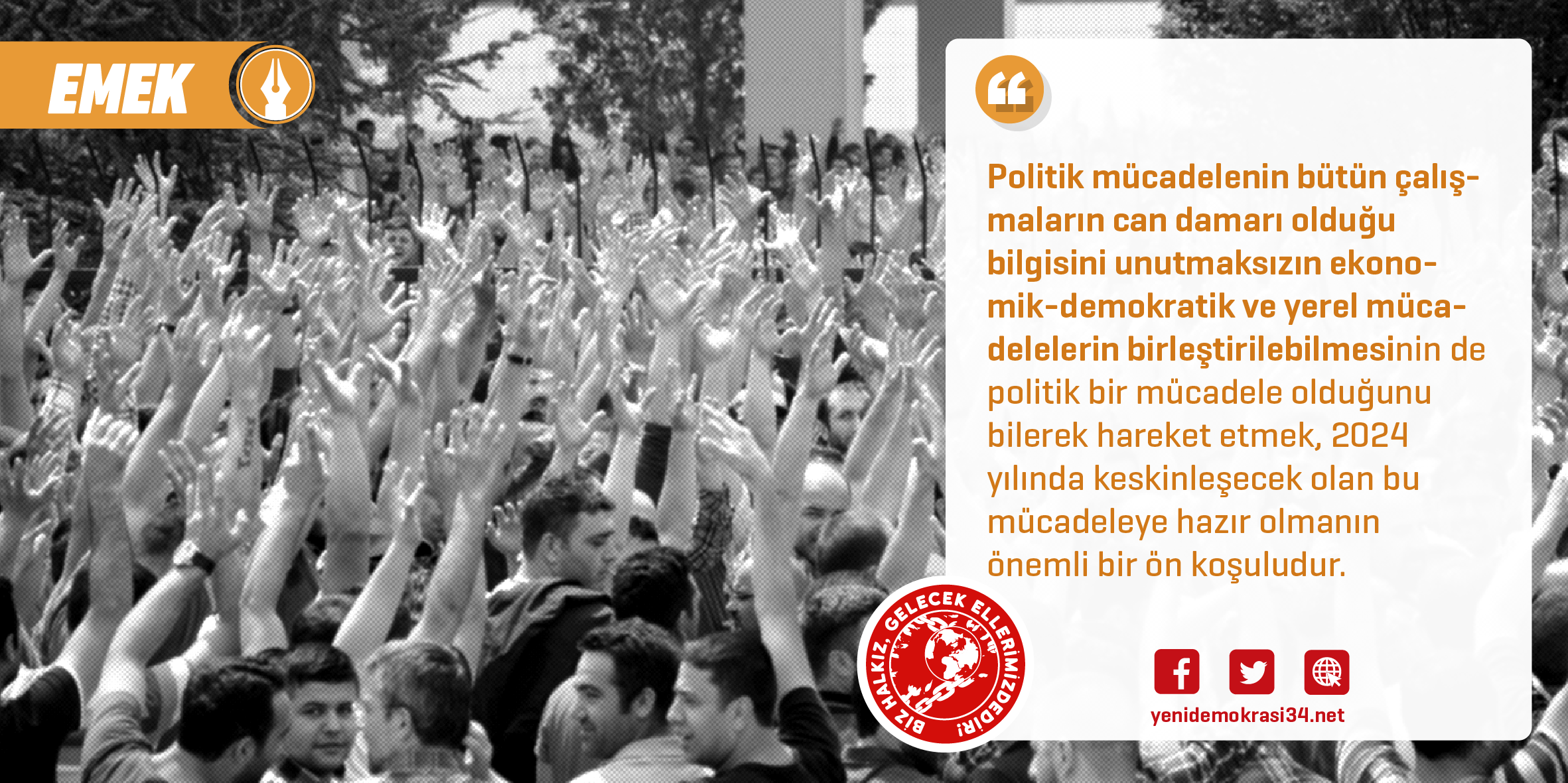 Ekonomik demokratik temelli hareketlenmelerin politik içerik taşımasının bu içerik zayıf olsa dahi önemli bir anlamının olduğunu belirtmiştik. İşçi sınıfının, bir sınıf olarak her talebi, ilk etapta karşıtı sınıfla arasındaki çelişkinin tezahürüdür. Bu çelişki dönem dönem daha görünür ve keskin hale gelerek şiddetlenir. Egemen sınıflar, kendiliğinden işçi hareketlenmelerinin, mevcut çeperleriyle, politik bir mücadeleye dönüşmeyeceğini bilseler dahi bu mücadelelere farklı dozlarda karşı çıkarken aslında sınıf mücadelesinin hafife alınmaması gerektiği üzerine edindikleri tarihsel bilgi ve birikime dayanmaktadırlar. Aynı bilgi ve birikimle ekonomik-demokratik mücadelenin önemli olduğunu ama mutlaka ilk etapta bu mücadelelerin yerelden genele, istisnadan kurala evriltilmesi gerektiğini bilerek hareket etmek de işçi sınıfı için elzemdir. Güncel politik görevler içerisinde sınıf bilinçli kesimler açısından da bu görev güncelliğini korumaktadır. Politik mücadelenin bütün çalışmaların can damarı olduğu bilgisini unutmaksızın ekonomik-demokratik ve yerel mücadelelerin birleştirilebilmesinin de politik bir mücadele olduğunu bilerek hareket etmek, 2024 yılında keskinleşecek olan bu mücadeleye hazır olmanın önemli bir ön koşuludur.