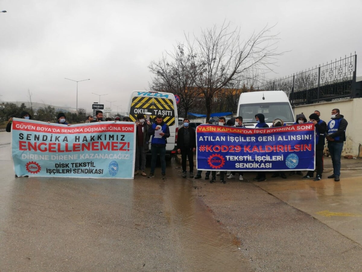 Bizimle aynı şekilde, sendikal faaliyet yürüttüğü ve işyerindeki baskılara karşı çıktığı için Kod 29 ile işten atılan Güven Boya işçileriyle birlikte sesleniyoruz. Üzerimizde kurduğunuz baskılar bizleri yıldıramayacak. İşe geri alınana kadar, iki fabrikadaki baskılar ve sendika düşmanlığı da bitene kadar mücadelemiz sürecek. Bu mücadelenin sonunda kazanan biz olacağız ve kazanana kadar direneceğiz.