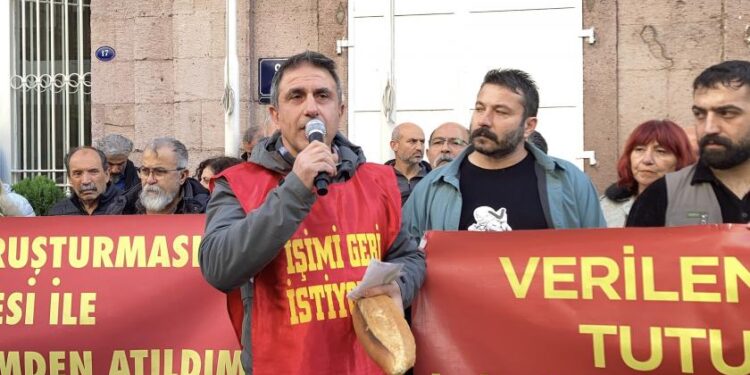 Eylemde basın açıklaması gerçekleştiren Barış Aras, “Sendikal faaliyetlerimiz nedeniyle FETÖ’den tutuklanan hakim ve polislerin komplosuyla hapis yatırıldım. Ben işe girerken İzmir Büyükşehir Belediyesi bürokratlarına sabıka kağıdımı teslim ettim. Onlar da hukuken çalışmamda bir sakınca olmadığını söyleyip iş başı yaptırdılar. 6 ay geçti ve güvenlik soruşturması gerekçe gösterilerek işime son verildi. Bizleri işsizlikle mi terbiye edeceksiniz? Bunu asla kabul etmiyorum. Burada çalışma hakkım ve yaşama hakkım ihlal edilmiştir. 24 gündür burada belediyenin kapısı önünde direniyorum, her sabah buradan bana gülümseyip binaya geçiyorlar. Ben merhamet değil, adalet istiyorum” diye konuştu.