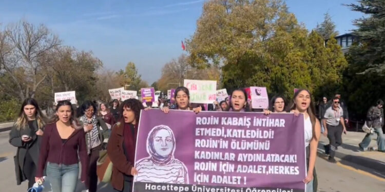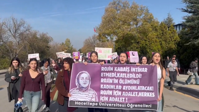 Hacettepe Üniversitesi öğrencileri, Van Yüzüncü Yıl Üniversitesi öğrencisi Rojin Kabaiş’in katledilmesine tepki göstermek için kampüs içinde yürüdü. Yürüyüş boyunca, “Bijî Berxwedana Jinan”, “ATK Koruma DNA’yı Açıkla” ve “Jin Jiyan Azadî” sloganları atıldı. Rojin Kabaiş’in fotoğraflarının taşındığı eylemde “Rojin Kabaiş intihar etmedi, katledildi. Rojin’in ölümünü kadınlar aydınlatacak. Rojin için adalet herkes için adalet” pankartı açıldı.