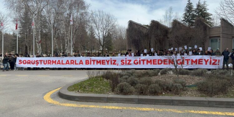 Hacettepe Üniversitesinde Rektörlük önünde bir araya gelen öğrenciler Nizamiye önüne yürüdü. Öğrenciler üniversite kapısı önünde uzaklaştırma cezası aldıkları için okula giriş yapamayan arkadaşlarıyla buluştu. “Soruşturmalarla Bitmeyiz, Siz Gitmeden Gitmeyiz!” yazan pankart açıldı. Üniversite öğrencileri, kayyım Rektör Cahit Güran tarafından açılan soruşturma ve uzaklaştırma cezalarını protesto etti.