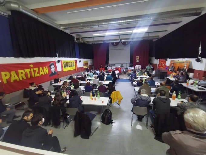 Saygı duruşunun ardından 2020 yılında ölümsüzleşen Dersim şehitlerinin yaşam ve mücadelelerinden kesitler sunulan sinevizyon gösterildi. Ardından Avusturya Partizan adına yapılan konuşmada; “2020 yılında Dersim savaş alanında ölümsüzlüğe uğurladığımız Proletarya Partisi Merkez Komite üyesi Nubar yoldaş, savaşın askeri kurmaylarından Özgür ve Deniz yoldaşlar ile Halk Savaşçıları Şerzan, Rosa, Asmin ve Muharrem yoldaşları anmak amacıyla toplandık. Sınıf mücadelesinin zorlu süreçlerinde yılgınlığa-karamsarlığa meydan okuyarak, kavganın kızıl bayrağını bizlere emanet ederek ölümsüzleşen yoldaşlarımızı anmak elbette bir toplantıyla mümkün değildir. Onlar şahsında devrim ve komünizm mücadelesinde ölümsüzleşenleri anmak; her birinin mücadele içerisinde konumlandıkları, yüklendikleri sorumluluğu kuşanarak daha ileriyi hedefleyen bir konumlanma içerisinde olarak sınıf mücadelesinin engin denizi içerisine tüm benliğimizle atılmak ve zafere kilitlenmektir. Esas olan budur. Başarmamız gereken de budur” denildi. Konuşmanın sonunda 2020 Dersim şehitlerinin Proletarya Partisinin ihtilalci çizgisinin temsilcilerinden olduğu vurgulanarak; “Bir kez daha onların bıraktığı bayrağı bir an olsun yere düşürmeden, onlardan daha ileri koşacağımızın sözünü veriyoruz” denildi.