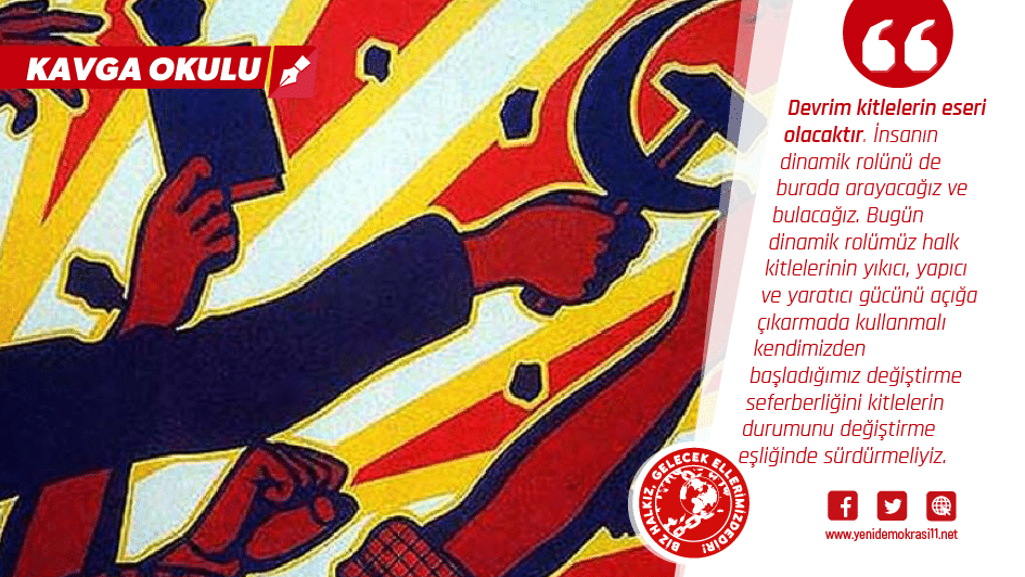 Tüm düşünme ve yapma eylemimizi devrimi gerçekleştirmeye adadığımızda karşımıza devrimi tek başımıza ya da bir kısım dinamik unsurla başaramayacağımız hemen anlaşılacaktır. Devrim kitlelerin eseri olacaktır. İnsanın dinamik rolünü de burada arayacağız ve bulacağız. Bugün dinamik rolümüz halk kitlelerinin yıkıcı, yapıcı ve yaratıcı gücünü açığa çıkarmada kullanmalı kendimizden başladığımız değiştirme seferberliğini kitlelerin durumunu değiştirme eşliğinde sürdürmeliyiz. Bölük pörçük inceleme yöntemlerinden, gelişi güzel genel belirlemelerden, vaz geçmeli halk yığınları denizinde devrimin olanaklarını aramalıyız. Burada kitle çalışmalarında ortaya çıkan bazı sorunlu yaklaşımlarımızı açmak da faydalı olacaktır. “kitleler korkuyor”, “çağırsak da gelmez ki”, “tartıştık ama anlamıyorlar”, “anlattık ama dinlemiyorlar”, “verdik ama istemiyorlar”, “hayatlarından gayet memnunlar”, “bunlar kitle değil kütle”, “ tartışmaya gerek yok kabul etmezler” vb. türevlerinde kitlelerin rolünü kavramayan, kendi devrimci niteliğini görmeyen anlayışlara karşı tavizsiz kitle çalışmalarına yoğunlaşalım. Bu anlayışın yanı sıra kitlelere rehber olmayı genel çağrılarla sınırlandıran çalışma tarzıyla aramıza devrimci mesafeler koyalım. Kitlerle doğrudan ilişkiyi esas alırken onların sorunlarında somutlaşan siyaseti üretme ve kitleleri bu siyaset etrafında örgütleyen bir anlayışla hareket edelim. En doğru siyaset dahi halk yığınları tarafından sahiplenilmiyorsa, kitleler bakımından bir karşılığı yoksa başarıya ulaşmamış demektir.
