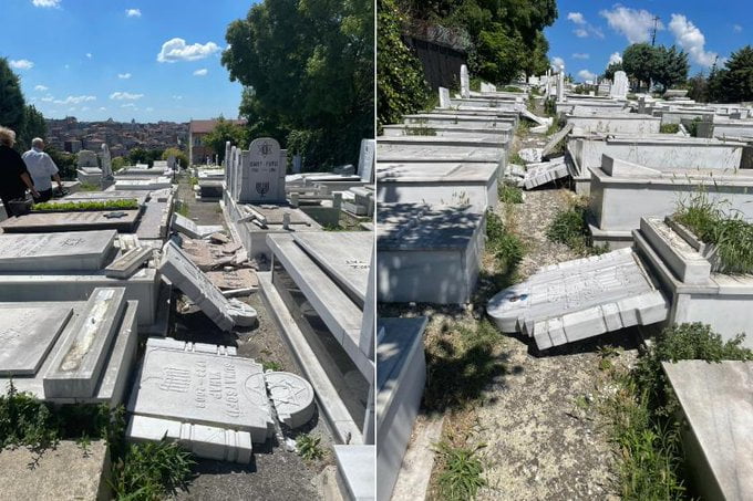 HABER MERKEZİ- Türk Yahudi Toplumu, İstanbul Hasköy Mezarlığı’na gece yarısı giren kimliği belirsiz kişilerin Yahudilere ait 36 mezar taşını tahrip ettiğini duyurdu.