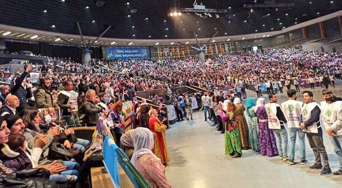 Yöresel kıyafetleriyle 7’den 70’e binlerce kişinin akın ettiği kongre salonunda coşku bir an olsun dinmedi. Kongreye gelenler salonda çalınan müzikler eşliğinde zılgıtlar ve sloganlar atarak halay çekti. Kongreye katılanlar ayrıca Kandıra 1 No’lu F Tipi’nde yaşamını yitiren Geribe Gezer’i ve hapishanede bulunan tutsaklar için sloganlar attı. Kongreye katılanlar HDP üzerindeki baskılara dikkat çekerek, “HDP halktır halk burada” sloganları attı.