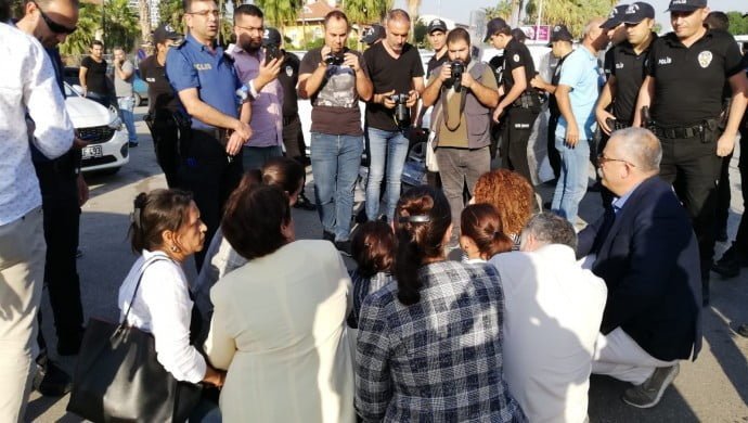 Halkların Demokratik Partisi (HDP) Adana İl Örgütü’nün “Demokrasi için buluşuyoruz” şiarıyla Uğur Mumcu Meydanı’nda yapmak istediği halk buluşmasına polis müdahale etti. Polis valilik yasağını gerekçe göstererek eyleme izin vermeyeceklerini söyledi. Bunun üzerine polis, HDP İl Eşbaşkanları Mehmet Mahsun Eriğ ile Gülseren Tural’ın da aralarında olduğu 9 kişiyi gözaltına alındı. Bunun üzerine HDP milletvekilleri Feleknaz Uca, Tülay Hatimoğulları, Rıdvan Turan, Fatma Kurtalan ve HDK Eş Sözcüsü Sedat Şenoğlu oturma eylemine geçti. Polis vekilleri abluka altına alırken, Kurtalan polislerin anayasal suç işlediğini hatırlattı. Kurtalan, gözaltındaki arkadaşları serbest bırakılana kadar oturma eylemi yapacaklarını söyledi.