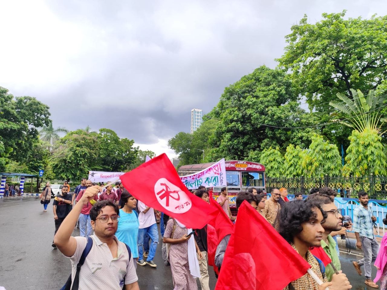 18 Temmuz’da Kolkata’da RSF, PDSF ve diğer ilerici ve demokratik gençlik örgütleri Bangladeşli öğrencilerle dayanışma yürüyüşü gerçekleştirdi. Yürüyüş esnasında öğrencilerin önün polis tarafından kesildi, barikat kuruldu. Öğrenciler barikata yüklendi. Polisin saldırısında 70 öğrenci gözaltına alındı. Gözaltılara tepki gösteren öğrenciler, barikata yüklenmeye devam etti. Polis ile öğrenciler arasında uzun süre çatışmaların devam etmesinin ardından, gözaltına alınan tüm öğrenciler serbest bırakıldı.