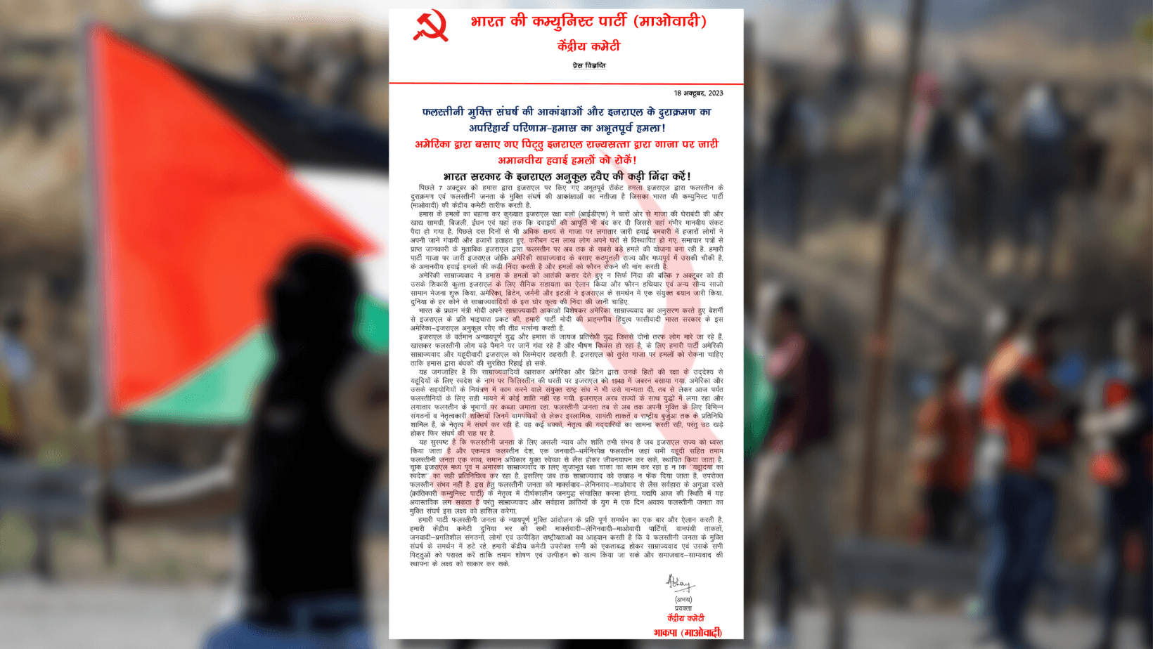 Hindistan Komünist Partisi (Maoist) Siyonist İsrail’in Filistin saldırılarına ilişkini açıklama yayımladı.