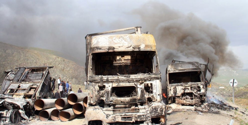 ‘DÜŞMANLA ÇALIŞAN’ KİŞİLERE AİT ALTI TIR ARACI YAKILDI