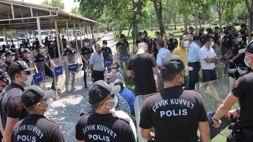 Medeniyetler Beşiğinde Yakınlarını Kaybeden Ailelerle Yardımlaşma Birlik ve Kültür Derneği (MEBYA-DER) tarafından Koşuyolu Parkı’ndaki İnsan Hakları Anıtı yapılmak istenen eyleme Demokratik Bölgeler Partisi (DBP), Halkların Demokratik Partisi (HDP), Özgür Kadın Hareketi (TJA) aktivistleri, Tutuklu Yakınları ile Dayanışma Derneği (TUAY-DER), MED Tutuklu ve Hükümlü Yakınlarıyla Hukuki ve Dayanışma Dernekleri Federasyonu (MED TUHAD-FED) yöneticileri de katıldı.