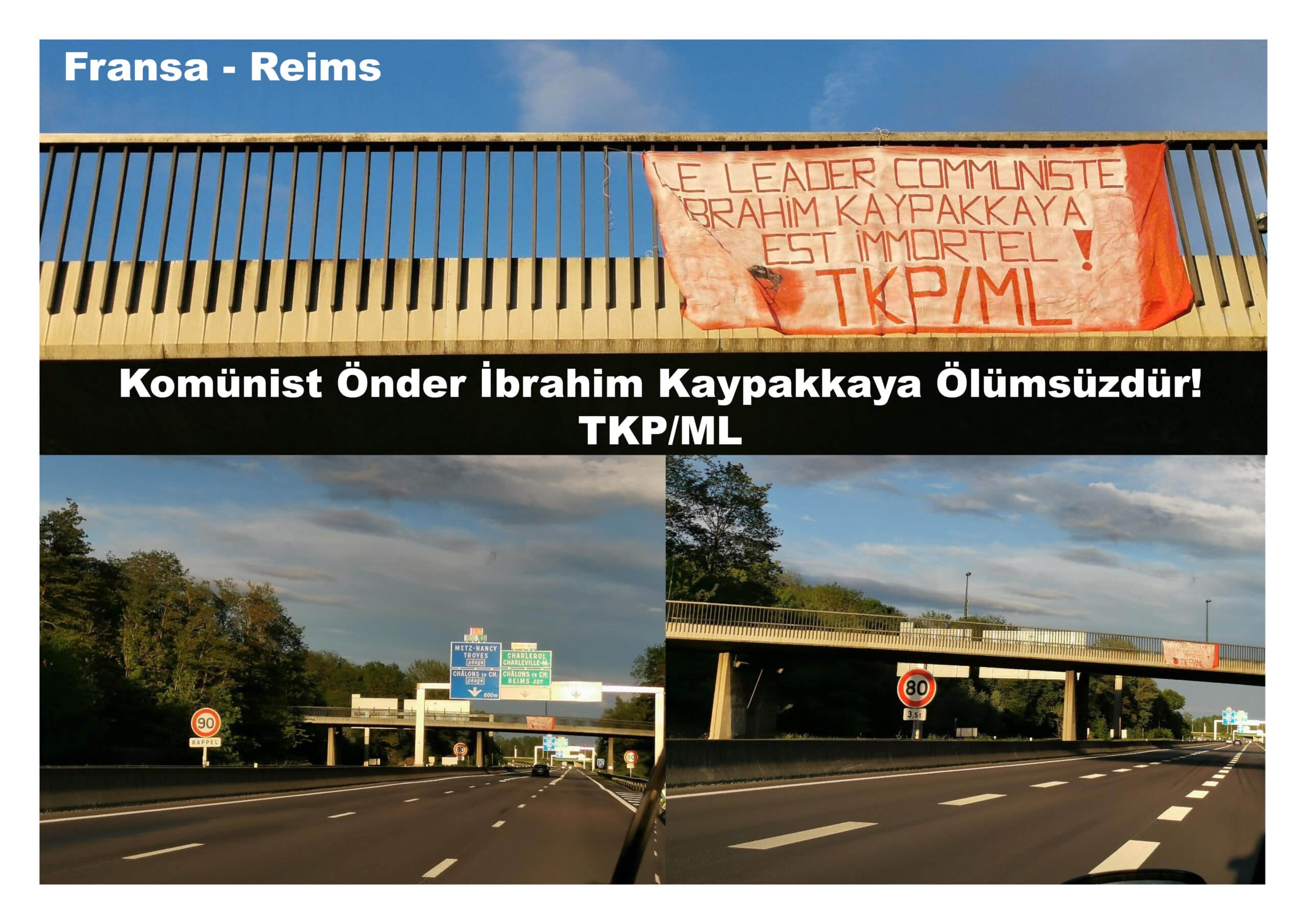 Fransa’nın Reims şehrinde TKP/ML militanları tarafından 18 Mayıs akşamı “Komünist Önder İbrahim Kaypakkaya Ölümsüzdür!” Fransızca yazılı pankart ana otoban köprüsüne asılarak önder Kaypakkaya anıldı.
