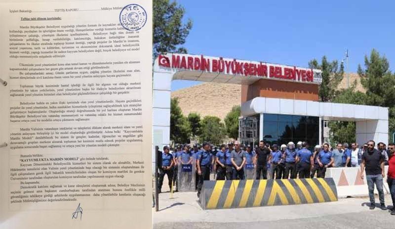 İçişleri Bakanlığı Mülkiye Müfettişleri tarafından Mardin Büyükşehir Belediyesi’nin yolsuzluk, usulsüzlük ve rüşvetle anılan kayyım yönetiminde olduğu Kasım 2016 ile Mart 2019 yılları arasındaki icraatlarına ilişkin hazırlanan raporun detaylarına ulaşıldı. Teftiş için Mardin’e geldikleri gün yaşananlar tartışmalı olan müfettişlerin hazırladığı 400 sayfalık raporda bol bol kayyım övgüsü yer aldı.