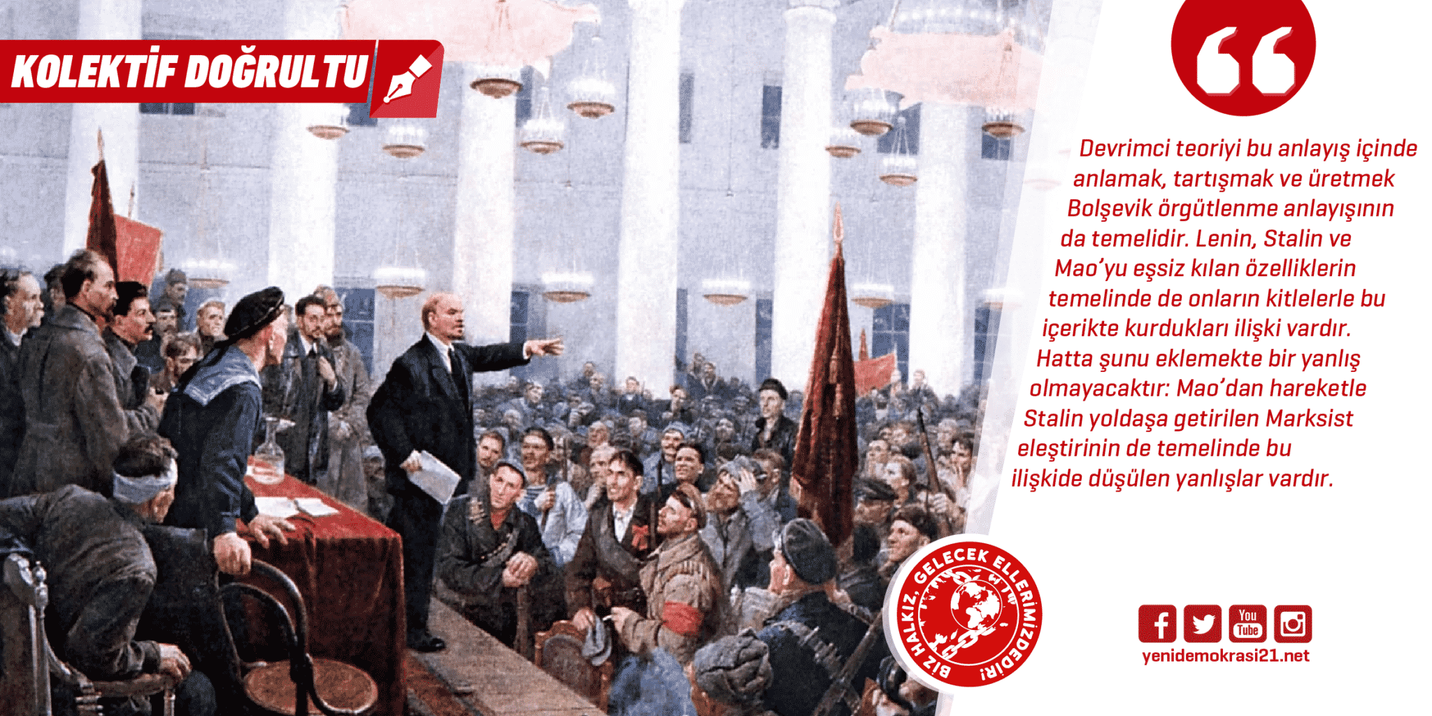 Devrimci teori olmadan devrimci pratik olmaz ilkesinin kavranması Bolşevik örgütlenmenin olmazsa olmazıdır. Önceki yazılarda konu ettiğimiz önderlik yeteneğinin geliştirilmesinde dikkat çektiğimiz genel siyasi çizgi söz konusu devrimci teorinin temeli, başka bir ifadeyle kaynağıdır. Vurguladığımız gibi içinde koşulları kavramadan, tamamlanmamış devrimleri, yani içinde olduğumuz devrim süreçlerini bilmeden devrimci pratik geliştirmek esas olarak olanaksızdır. Devrimci pratiğin karşılığı kitlelerin devrime kazanılması, devrim bilincinin kitlelere taşınması, kitlelerin iktidar bilinci edinmesi, iktidar olanağı bulması ve bu anlamda yönetmek için harekete geçirilmesidir. Devrimci teoriyi bu anlayış içinde anlamak, tartışmak ve üretmek Bolşevik örgütlenme anlayışının da temelidir. Lenin, Stalin ve Mao’yu eşsiz kılan özelliklerin temelinde de onların kitlelerle bu içerikte kurdukları ilişki vardır. Hatta şunu eklemekte bir yanlış olmayacaktır: Mao’dan hareketle Stalin yoldaşa getirilen Marksist eleştirinin de temelinde bu ilişkide düşülen yanlışlar vardır.