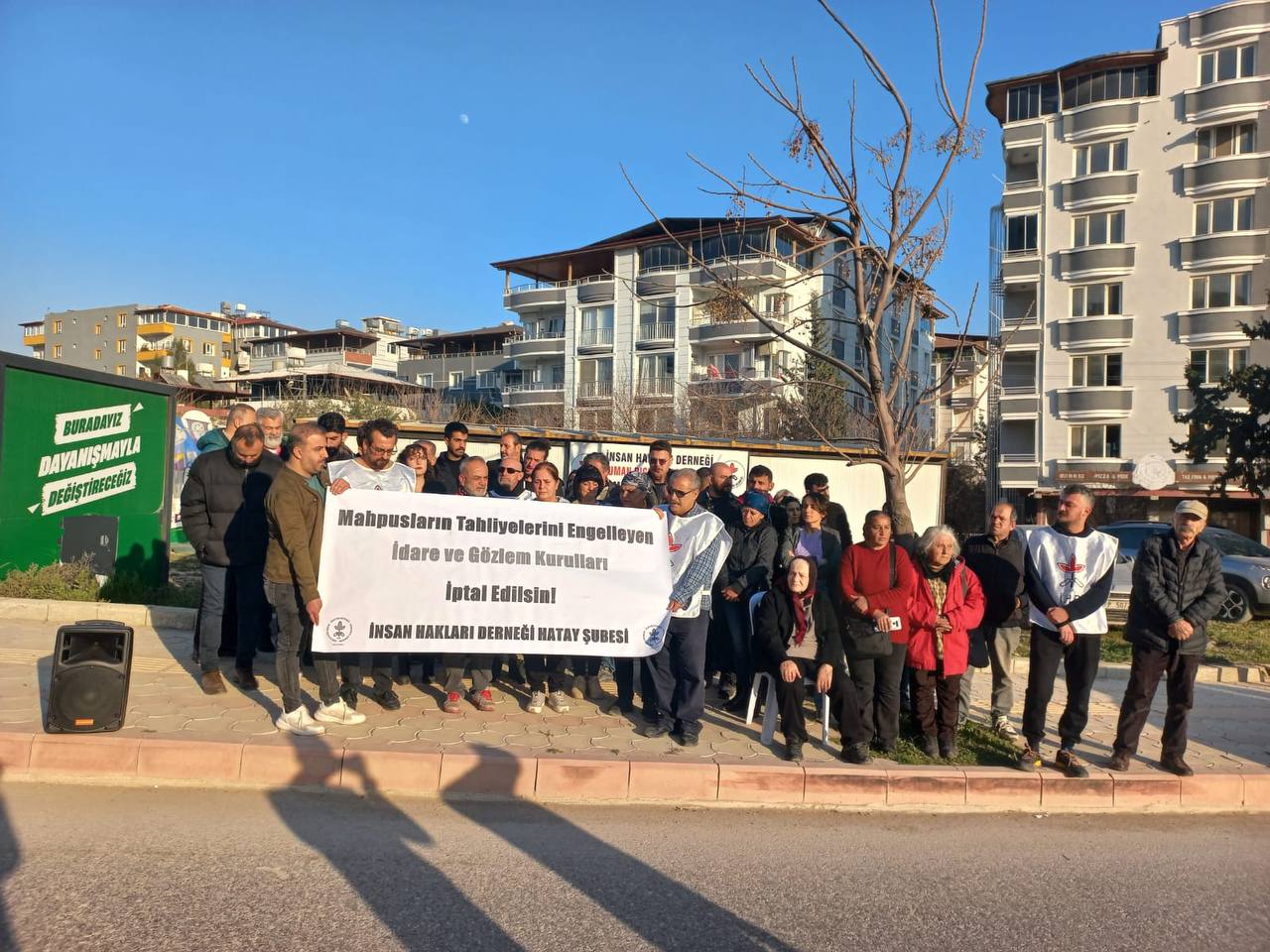 Basın açıklamasını İHD Hatay Eş Başkanı Mürsel Tonguç Salmanoğlu okudu. İdare ve Gözlem Kurulu kararlarıyla 2021 yılından itibaren en az 501 tutsağın tahliyesinin engellendiği belirtilen açıklamada “Bu yönetmelik doğrultusunda oluşturulan kurullar, kendilerini mahkeme yerine koyarak mahpuslar hakkında iyi halli olup olmadıklarına dair değerlendirmede bulunmakta; mahpusların koşullu salıverilme ve denetimli serbestlik haklarından yararlanıp yararlanmayacaklarına karar vermektedirler.” denildi.