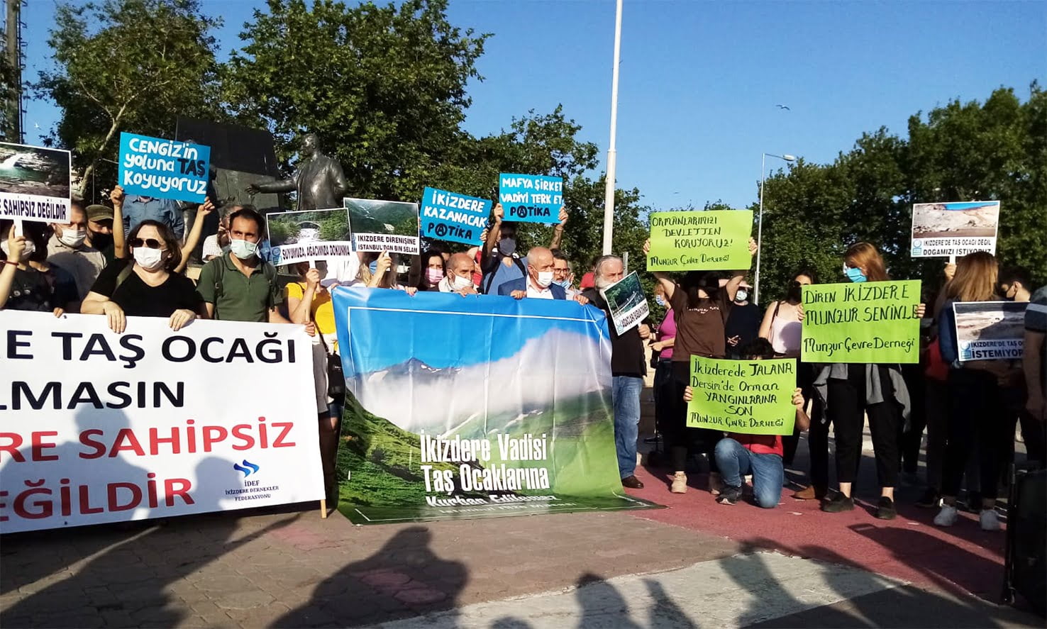 “İkizdere taşocağı olmasın, İkizdere sahipsiz değildir” pankartının açıldığı dayanışma eyleminde, “Kurtuluş yok tek başına ya hep beraber ya hiçbirimiz”, “Cengiz defol İkizdere bizimdir” sloganları atıldı. Dersim’den İşkencedere vadisine sloganların yükseltildiği eylemde polis tulum çalan ekoloji savunucusunu gözaltına almaya çalıştı. Kitle “Baskılar bizi yıldıramaz” sloganları ile gözaltılara izin vermedi.