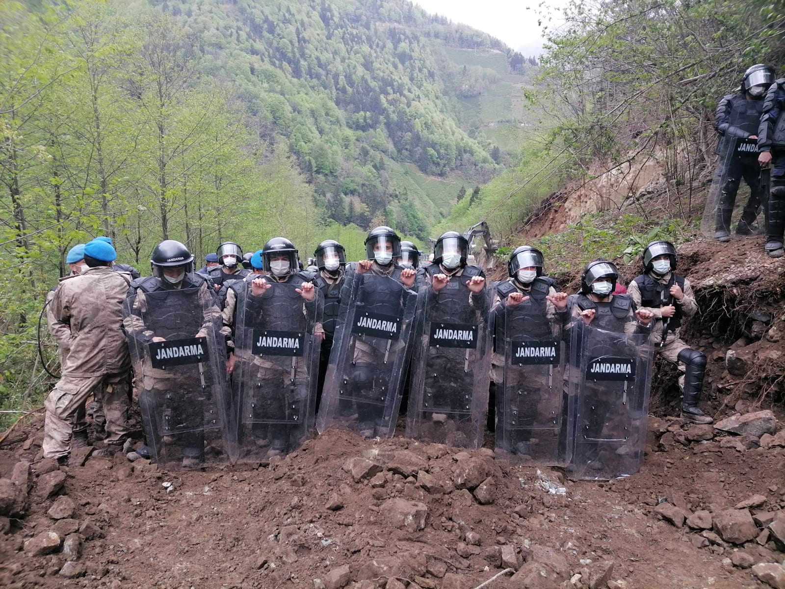 HABER MERKEZİ– AKP’ye yakınlığıyla bilinen Cengiz İnşaat’ın taş ocağı yapmak istediği İkizdere İşkencedere Vadisi’nde doğaya yönelik saldırı da halkın direnişi de sürüyor. Bölge halkının tepkisine rağmen iş makineleri 6. günde bir kez daha jandarma eşliğinde çalışmaya geldi.