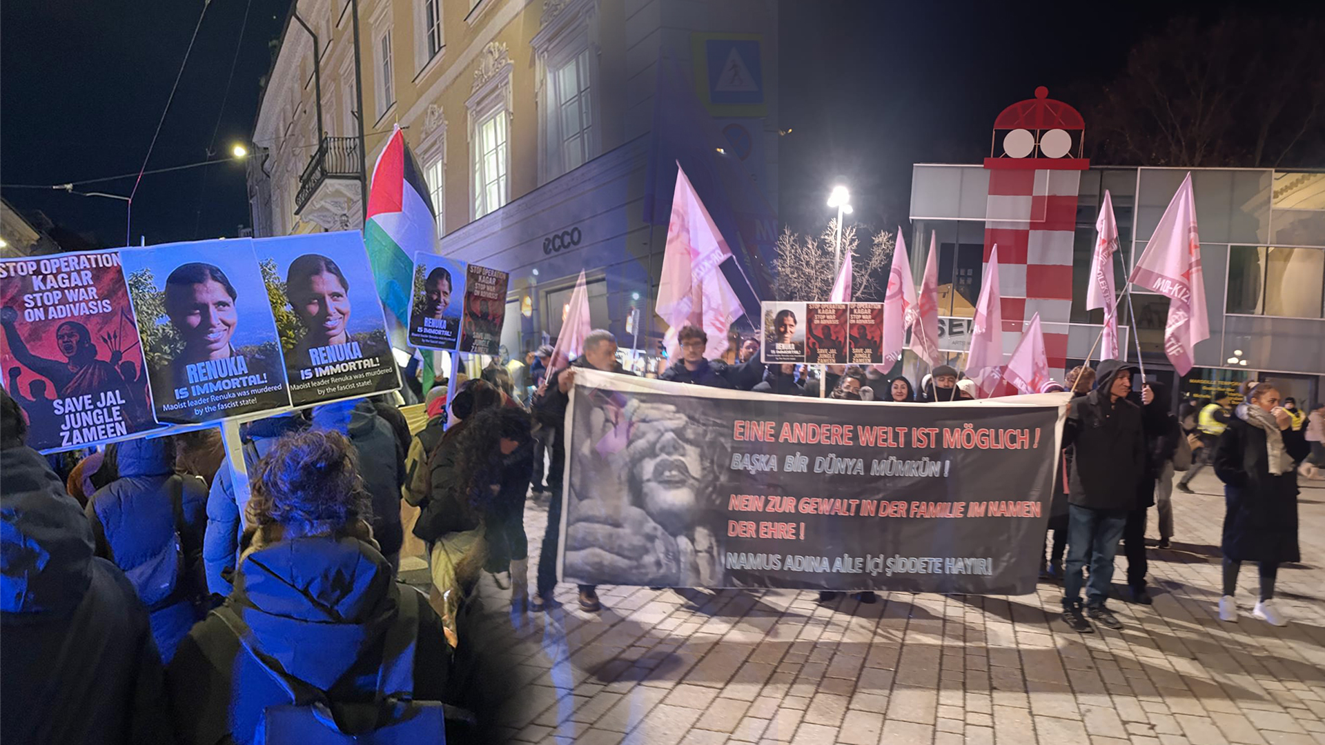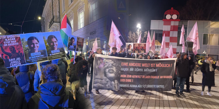 Innsbruck’un kalabalık sokaklarından geçen kitle yoğun bir şekilde “Yaşasın Enternasyonal Dayanışma”, “Kadın Katliamlarına Hayır”, “Jin Jiyan Azadî” sloganlarını haykırdı. Yürüyüş Landesmuseum önünde gerçekleştirilen müzik dinletisinin ardından sonlandırıldı.