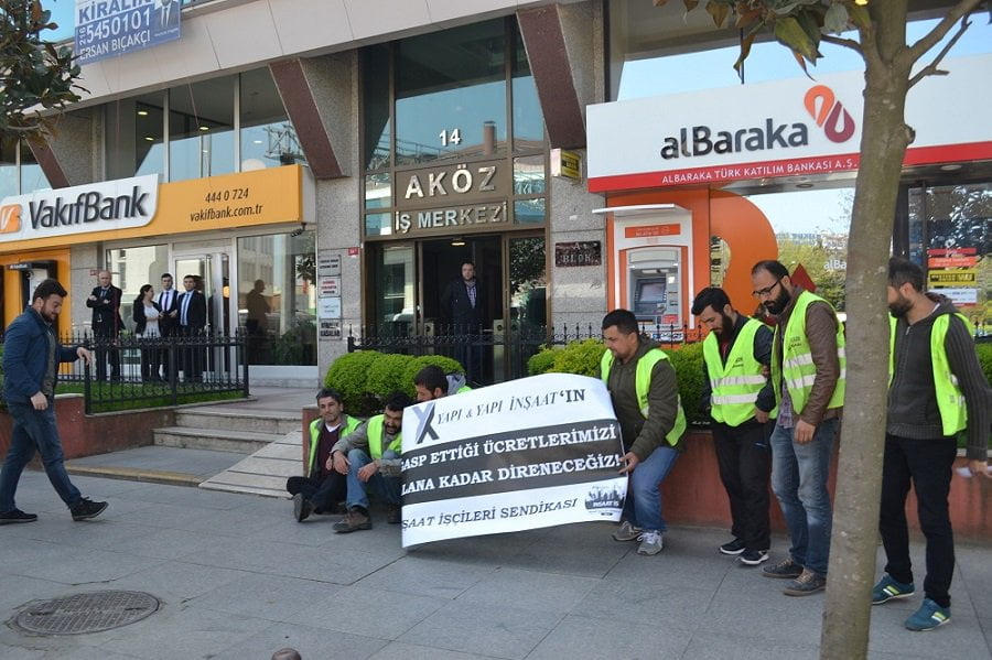 Yapı&Yapı firmasının Altunizade’deki merkez binası önünde bildiri dağıtımı gerçekleştiren işçiler polisler tarafından gözaltına alındı.
