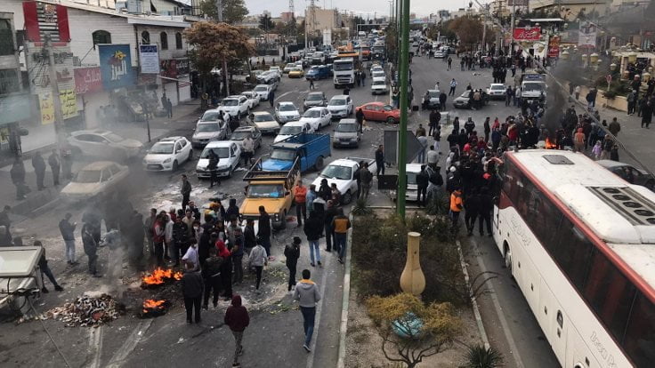 HABER MERKEZİ- İran’da petrol zammı nedeniye başlayan protestolar Rojhilat dahil ükenin birçok noktasına yayılıyor. Ahvaz, Hürremşehr, Bircend, Meşhed, Geçsaran, Sircan, Bender Abbas, İsfahan ve Şiraz kentlerinde sokağa çıkan halk, benzine yapılan zamma tepki gösterdi.