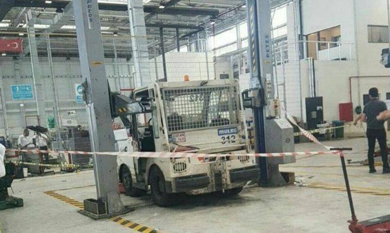 İstanbul Havalimanı’nda, Türk Hava Yolları’nın (THY) iştiraki olan yer hizmetleri şirketi TGS’ye ait araç bakım atölyesindeki işçilerin üzerine düştü. Kaza sonucu Erken Sengül isimli işçi hayatını kaybetti. Ağır yaralanan Mümin Özgül isimli işçi ise hastaneye kaldırıldı.