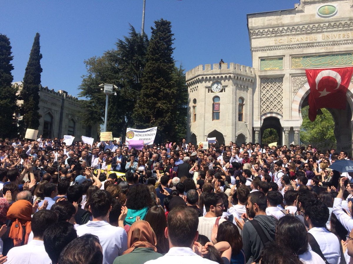 Ardından basın açıklamasını yapan İstanbul Tabip Odası Başkanı Prof. Dr. Pınar Saip, eğitim kurumlarının ekolleşmesini belirleyenin onların köklü gelenekleri ve yapıları olduğunu belirterek, “İstanbul Üniversitesi’ni birbirinden koparmak bu ekolün can damarlarını kesmek ve kimliksizleştirmekten başka bir amaca hizmet etmeyecektir. İstanbul Üniversitesi araştırma üniversitesi niteliğini mevcut yapısıyla kazanmış, hizmet, eğitim ve araştırma işlevini başarıyla yürüttüğünü nesnel ölçütlerle kanıtlanmış, yüksek nitelikte işlev gören bir kurumdur. Türkiye’nin uluslararası bilimsel literatüre en fazla katkı veren üniversitelerinden olan İstanbul Üniversitesi bu performansıyla son yıllarda dünya ölçeğinde yapılan üniversite sıralamalarına ülkemizden en ön sırada giren üniversite olmuştur. Büyük zorluklarla mücadele ederek bu pozisyona gelmiş olan İstanbul Üniversitesi’nin kritik kütlesinin parçalara bölünmesi ülkeye hiçbir yarar sağlamayacağı gibi verilebilecek en büyük zararlardan biridir. Ülkenin göz bebeği olan bu tarihi bu tarihi kuruma vurulacak bu darbe kabul edilemez” ifadelerini kullandı.