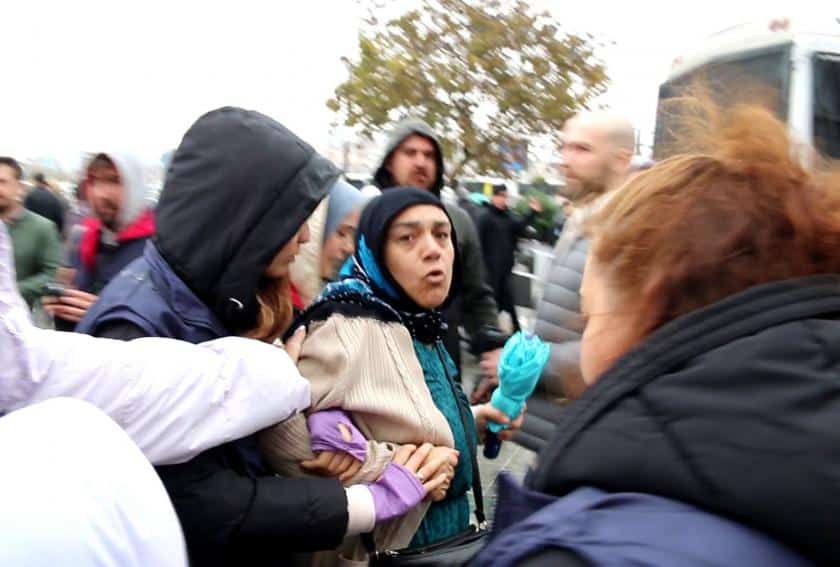Tutsak yakınlarını ablukaya alan polis, açıklama yapmalarına müsaade etmeden Kumri Akgül, Fince Akman, Cemile Çiftçi ve Cemile Karakaş’ı ters kelepçeyle gözaltına aldı. Tutsak yakınlarının emniyete götürülmeden önce sağlık kontrolü için Haseki Eğitim ve Araştırma Hastanesi’ne götürüldüğü öğrenildi.