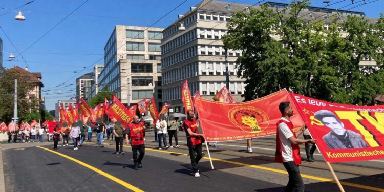 İsviçre’nin Zürih kentinde gerçekleşen 1 Mayıs eylemine on binlerce kişi katıldı. Artan zamlara, konut sorununa ve düşük ücretlere karşı halk sokağa indi. Helvetiaplatz’da toplanan binlerce kişi yürüyüşe geçti. Kitlesel gecen yürüyüşte, Partizan, Anti Emperyalist Lig (AEL) de katıldı. Ayrıca TKP/ML “Yaşasın Proletarya Enternasyonalizmi” şiarlı pankartıyla katıldı. Yürüyüşte sık sık “Yaşasın 1 Mayıs, Her Yer Taksim Her Yer Direniş” , “Önderimiz İbrahim İbrahim Kaypakkaya”, “Yaşasın Partimiz TKP/ML”, “Marks, Engels, Lenin, Stalin, Mao Viva, Viva Viva”, “Yaşasın Enternasyonal Dayanışma” sloganları atıldı.
